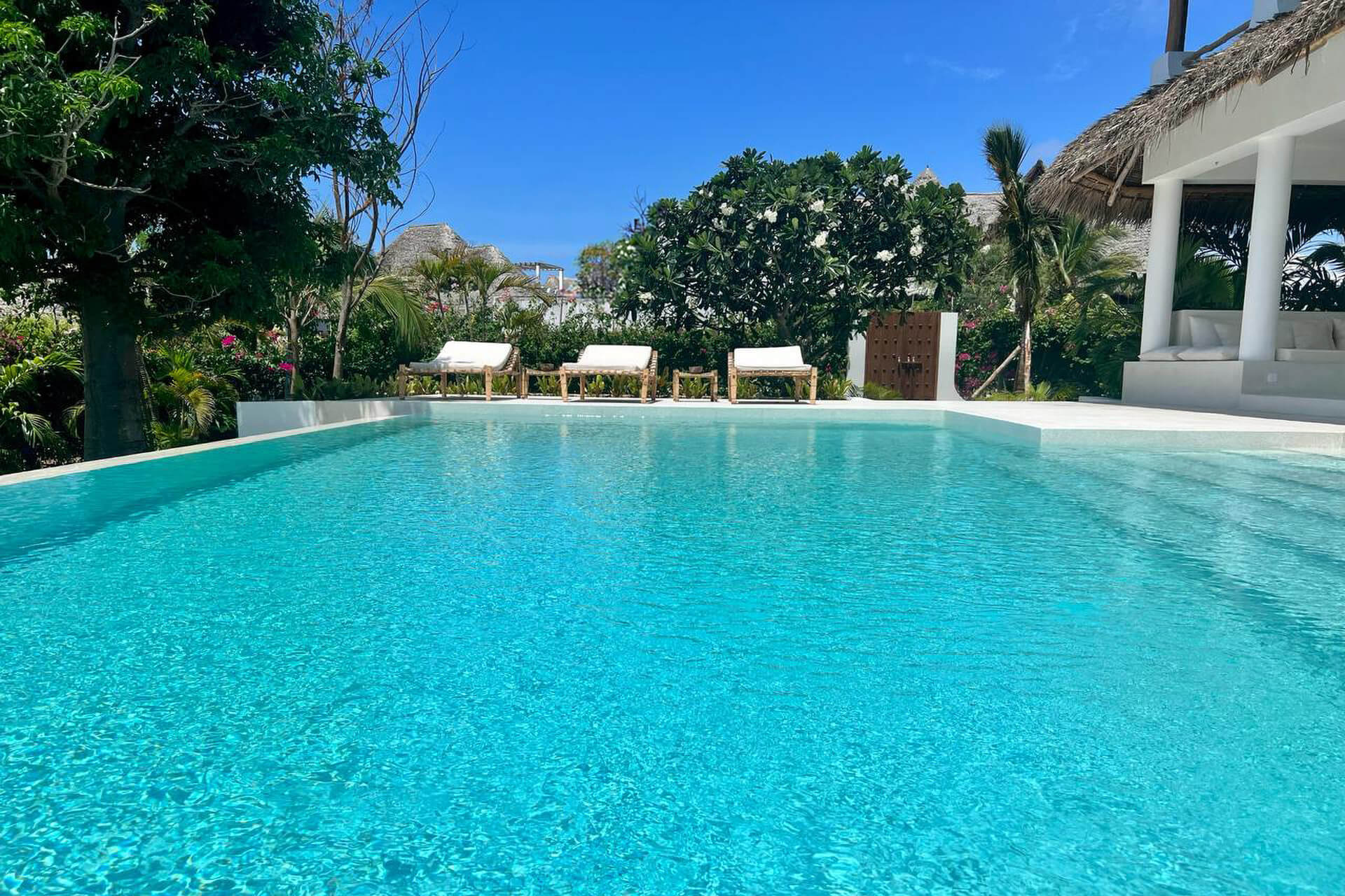 Welcome to Maji Villa, a refined private residence set in the heart of Jacaranda Bay – Watamu Beach, right in front of the iconic Safina sandbank. The villa offers direct private beach access, with a dedicated umbrella and private sun loungers, just a few steps from your veranda. Your stay includes a resident private staff, with chef, waiter, housekeeper, gardener and pool attendant, all dedicated exclusively to you. You will also enjoy an elegant infinity pool, a peaceful Oasis Massage corner, and an atmosphere of comfort, privacy and timeless Swahili Charm.